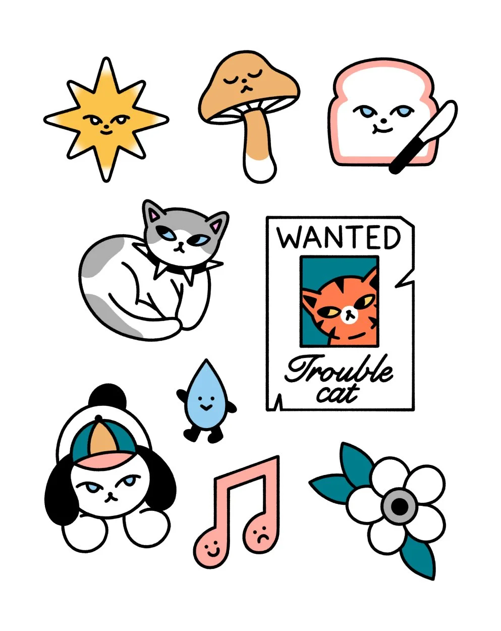 Badbat développe un univers graphique, à la fois décalé et minimaliste, inspiré par la pop-culture et des animaux.